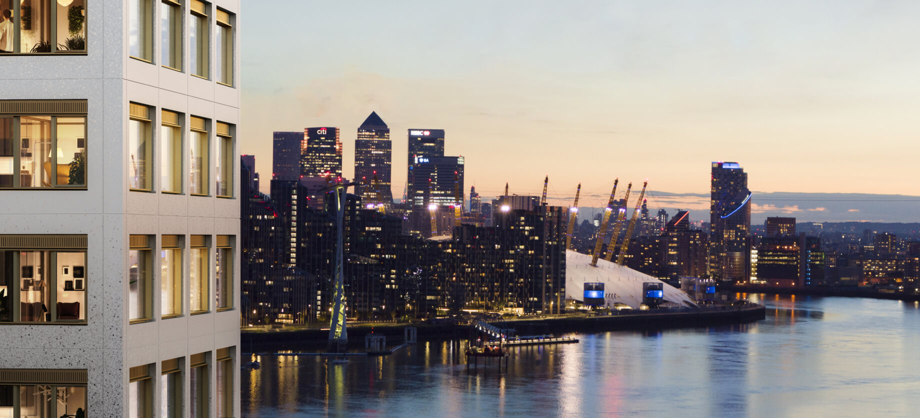 Set at an extraordinary point in East London where the River Thames meets Lyle Park, Riverscape’s south-facing waterfront setting makes it unique. The curvature of the river provides uninterrupted views across the Thames, green parkland and the iconic Canary Wharf skyline.